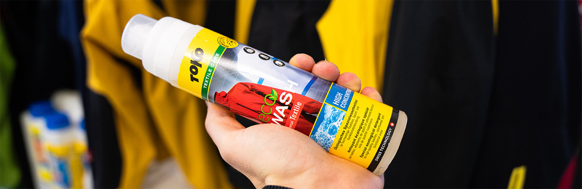 Toko Care Line offers a range of washing and care products for various outdoor gear, including detergents, waterproofing solutions, and specialized care for items like sports clothing, down, wool, shoes, and tents, with an emphasis on environmentally friendly options.